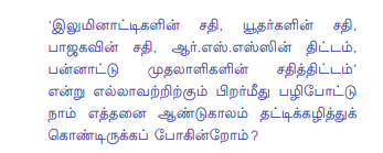 "இலுமினாட்டிகளின் சதி, யூதர்களின் சதி, பாஜகவின் சதி, ஆர்.எஸ்.எஸ்ஸின் திட்டம், பன்னாட்டு முதலாளிகளின் சதித்திட்டம்' என்று எல்லாவற்றிற்கும் பிறர்மீது பழிபோட்டு நாம் எத்தனை ஆண்டுகாலம் தட்டிக்கழித்துக் கொண்டிருக்கப் போகின்÷றாம்? அவர்கள் சதி செய்யவில்லை என்று நாம் சொல்லவில்லை. ஆம்...! அவர்களுடைய வேலையை அவர்கள் செய்கின்றார்கள். பொது சிவில் சட்டத்தைக் கொண்டுவருவதற்கு அவர்கள் துடிக்கின்றார்கள். அதற்கான பெரும் முயற்சியில் இன்று ஆட்சிக்கட்டிலில் அமர்ந்து சட்டத்தைக் கையிலெடுக்கின்றார்கள். அவர்களைக் குற்றம் சாட்டி, உணர்ச்சிப்பிளம்பாக உரை முழங்குவதோடு நாம் நமது எதிர்ப்பை முடித்துக் கொள்ள வேண்டுமா? முஸ்லிம் சமுதாயம் சுயஆய்வுக்கு முன்வர வேண்டும். இன்றைக்கும் ஷரீஅத் விஷயத்தில் அரசும், நீதிமன்றங்களும் மூக்கை நுழைக்கின்றன என்றால் நம்மிடம் குறைகளே இல்லையா...? நம் சமுதாயத்தில் வரதட் சணை என்ற பெயரில் எத்தனை பெண்களை வதைத்திருக்கின்றோம்? வரதட்சணை வாங்கிபவர்களைத் தட்டிக் கேட்டு நாம் அந்தக் குற்றவாளிகளை சட்டத் தின் முன் நிறுத்தத் தயங்கினோம். அதன் விளைவைத் தான் இன்று காண்கின்றோம்.