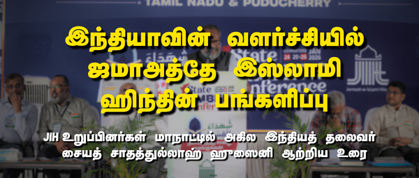 சொல்லி வருகிறது. நாம் பிரச்னைகளை மட்டும் பேசுவதில்லை. பிரச்னைகளுக்கான தீர்வையும் சொல்லி வருகிறோம். கொள்கை விற்பன்னர்களிடம் அந்தத் தீர்வுகளை எடுத்து வைக்கின்றோம். கருத்து உருவாக்குவதற்குத் தொடர்ந்து முயற்சித்து வருகிறோம். இது ஜமாஅத்தின் மிகப்பெரிய பங்களிப்பு.
